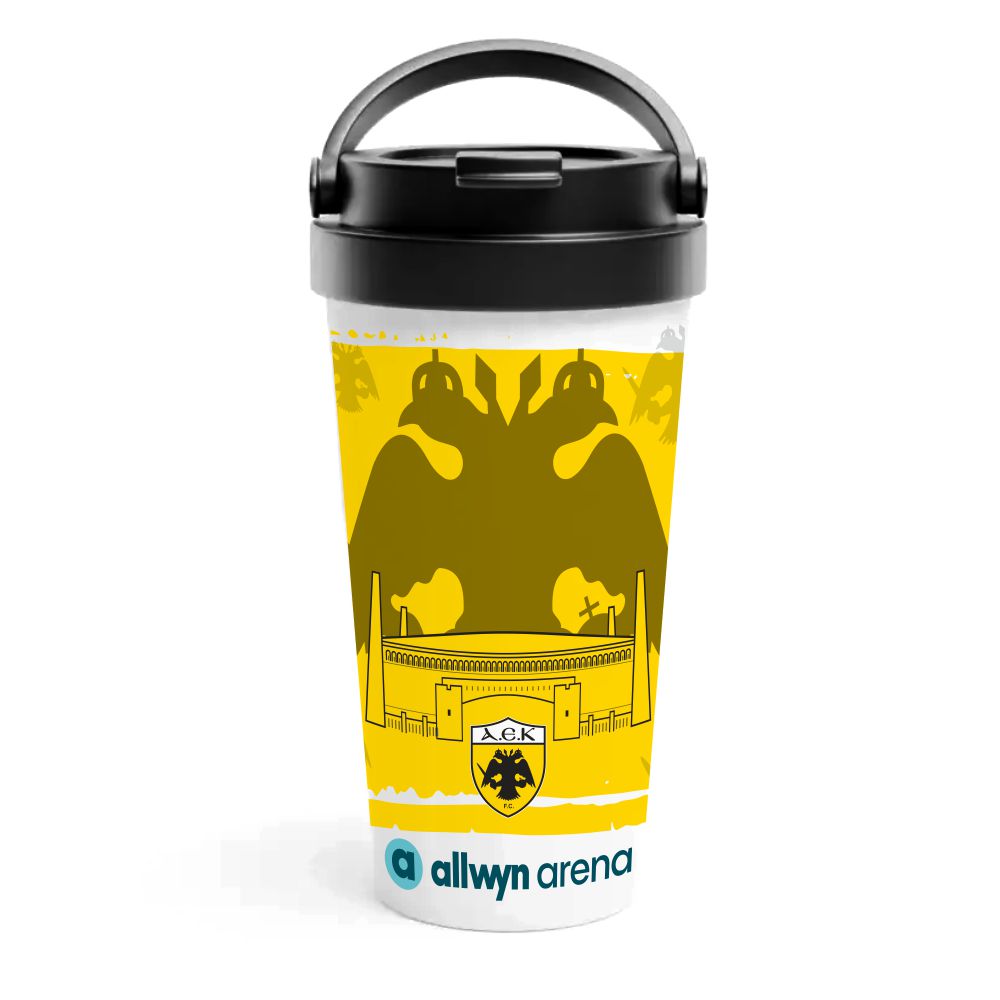 Δεν μπαίνει σε πλυντήριο πιάτων! Θέλει χέρι και απαλό σφουγγάρι! Φερθείτε του με αγάπη και αυτό το μοναδικό ΠΑΕ ΑΕΚ Travel Mug θα σας κάνει παρέα για πολλά χρόνια στα ταξίδια και τις βόλτες σας!