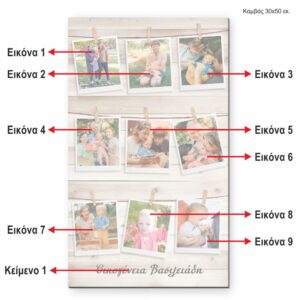 Προσωποποιημένος Καμβάς σε διάσταση 50×30εκ. με 9 φωτογραφίες και αφιέρωση.Σχέδιο CU26045