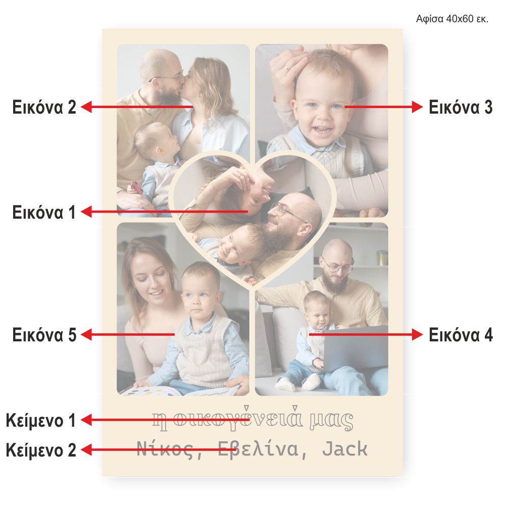 Family Love Poster! Προσωποποιημένη αφίσα σε διάσταση 40Χ60 με 5 φωτογραφίες και αφιέρωση Σχέδιο CU26048