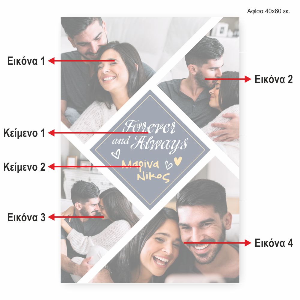 Forever & Always! Προσωποποιημένη αφίσα σε διάσταση 40Χ60 με 4 φωτογραφίες και αφιέρωση Σχέδιο CU26022
